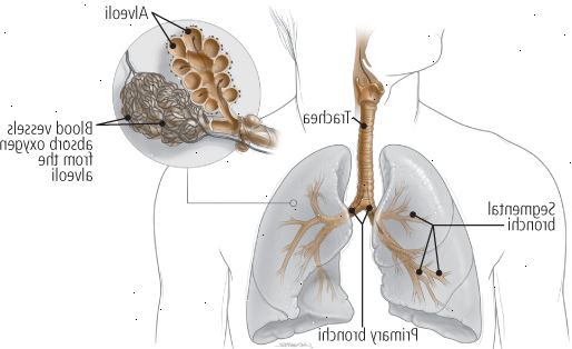 Když se nadechla, vzduch cestuje přes systém stále menších dýchacích cest od průdušnice, na průdušky, a nakonec drobné váčky známý jako alveolů (viz vložka). Systém drobných kapilár absorbuje kyslík z plicních sklípků a dodává ji po celém těle. |