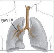 Normálně, když vdechují vzduch prochází snadno z nosu a úst do průdušnice, který větve do dvou průdušek, nebo průdušek, které se živí na pravé a levé plíce. Tyto primární bronchy rozdělit do menších a menších větví, nakonec zužuje do malé stonky volal bronchiolů, které končí v mikroskopických váčků, nebo plicních sklípků. Tyto malé váčky seskupovat kolem průdušinek v konfiguraci, která se podobá hrozny (viz obrázek 1).