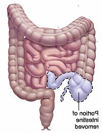 Nemocná část střeva se odstraní (resekována).