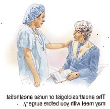 Bude vám řečeno, kdy přestat jíst a pít před operací. Pokud budete mít denně léky, zejména léky na ředění krve, zeptejte se svého lékaře, pokud byste měli trvat ještě jim ráno chirurgie. V nemocnici teplotu, tep, dýchání a krevní tlak se kontroluje. IV (nitrožilní) linka může být spuštěn, aby tekutiny a léky potřebné během chirurgického zákroku.
