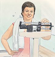 Kila svalů váží stejně jako kila tuku, ale zabírá méně místa. Myslete na vyškoleným sportovce a "povaleče". I když může mít stejnou výšku a hmotnost, sportovec vypadá zámečník, je zdravější, a pravděpodobně nosí menší velikosti oblečení. Pokud jste svalnatý, zkušební tělesného tuku, může být přesnější měřítkem vaší ideální hmotnosti než koupelně měřítku. Promluvte si se svým poskytovatelem zdravotní péče, který vám může pomoci nastavit vhodné cíle pro sebe.