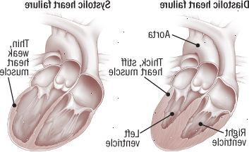 V diastolického srdečního selhání (vlevo), srdeční sval ztuhne a zahušťuje, brání komory z dostatečně relaxační naplnit krví. Systolický srdeční selhání (vpravo) nastane, když se svaly v srdci levé komory se stal tenký a slabý, což způsobuje nižší polovina srdce balón ven a zhoršuje jeho schopnost pumpovat. Oba typy srdečního selhání způsobit pokles množství okysličené krve v oběhu v těle. |